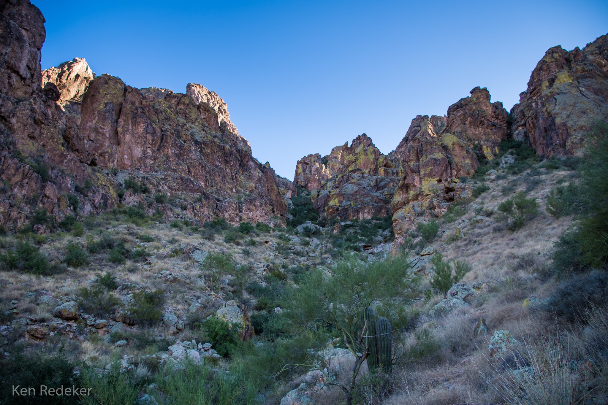 The Ragged Top is the crown jewel of the Ironwood Forest National Monument. The peak is a mass of Tertiary rhyolite. The hike up the north gully to the summit is about 4 miles round trip. I made a couple of wrong turns. The elevation gain from the desert floor is about 1,767 feet, and mostly bushwhacking through cat claw shrubs. It was nasty but worth it.