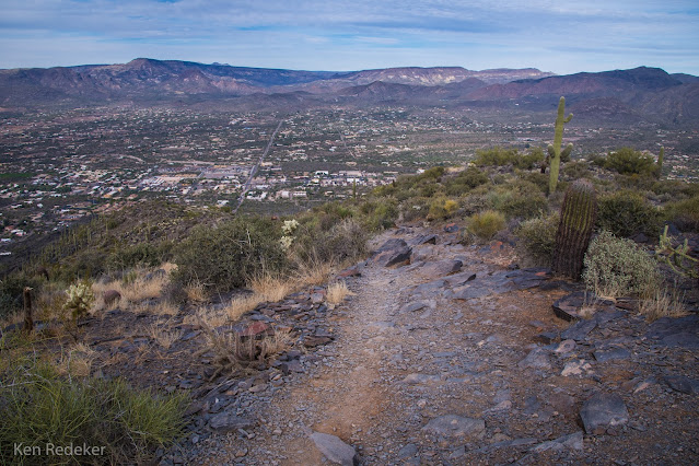 This morning I hiked out to the Sinagua ruins in Long Canyon. It's a difficult hike on a faint trail which requires scrambling, climbing, and bushwhacking. It was 2.4 miles from where I parked, and took me 96 minutes to reach the ruins. The ascent is 1,170 feet from the road where I parked.